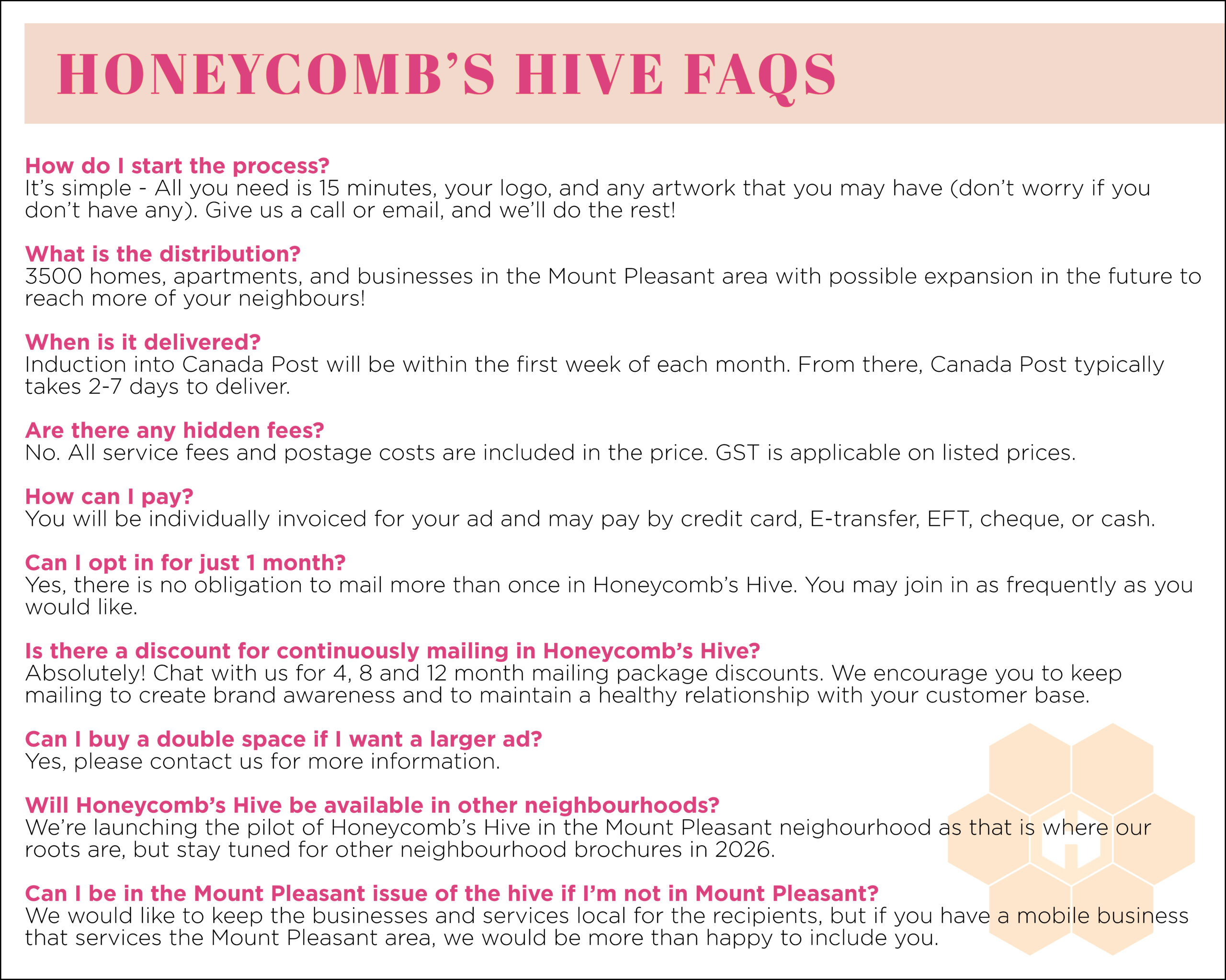 THE HIVE is a fun and affordable way for businesses to shine in their own community. With a few easy steps, you can leave the marketing complications to our professionals.